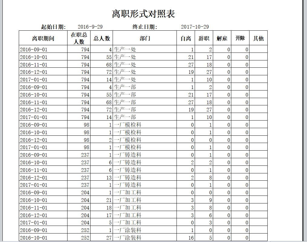 通過同鑫人事管理軟件中的離職形式分析表來查明員工離職原因,以此來調(diào)整管理制度,如下圖所示: