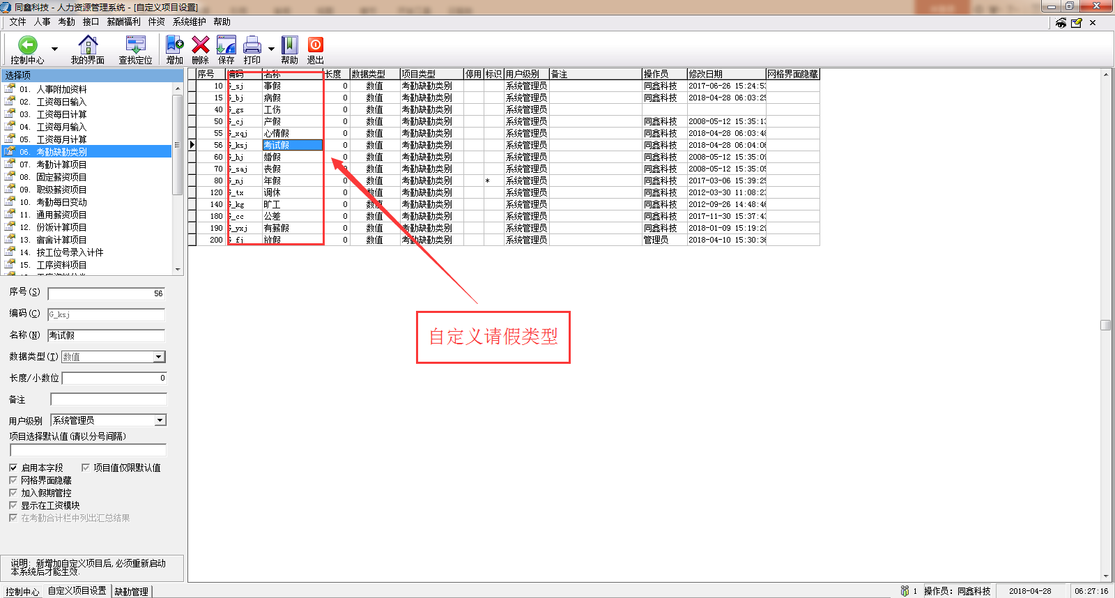 1、在定義請假類別方面,除了符合國家規定的事假、病假、年假、產假等有薪和無薪兩大假期類型外,還可以根據企業的實際情況,自己去定義其它假期類別:比如為了提高員工的福利,在系統中建立考試假、心情假等。