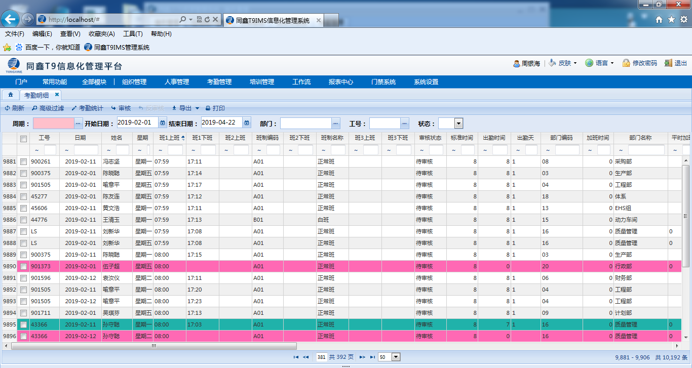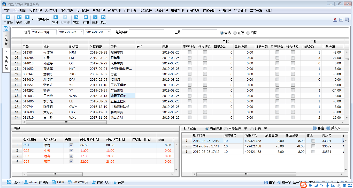 2.同鑫人力資源管理系統(tǒng)上線情況: 上線模塊有,人事/事務(wù)/考勤/門禁/消費/報表等