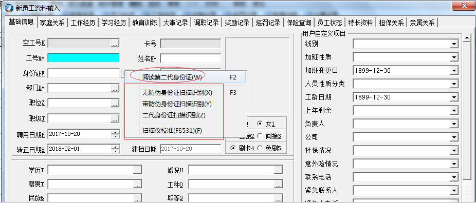 3:二代身份證一鍵入職-通過二代身份證閱讀器,即可以在本系統內實現身份證檢驗,資料讀取,自動批量錄入等功能,實現一鍵入職!
