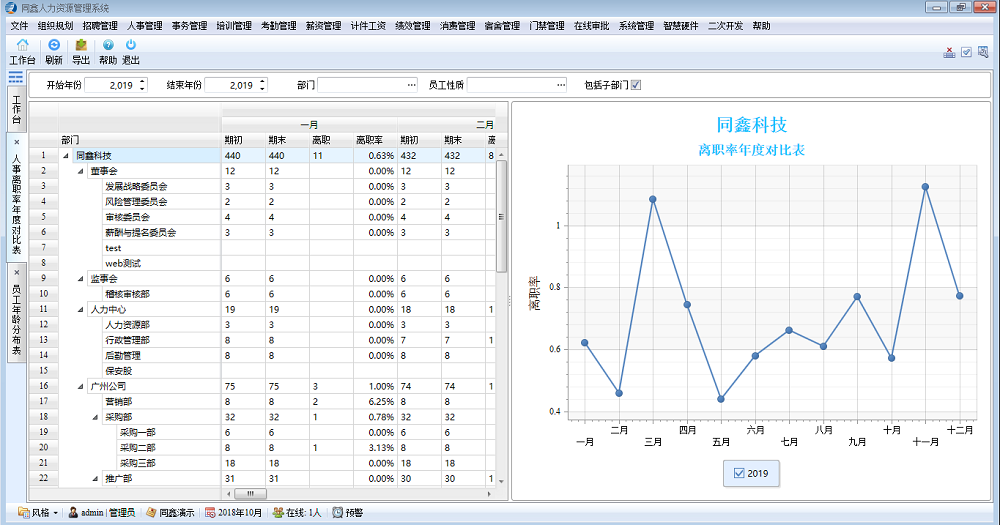 目前市場上很多說是通過穿透解決360度履歷查詢,在一個介面穿透所有涉及這個人員的所有信息,不管從管理上、還是操作上,聽起來都是非常方便的。但實際上對于系統的實現難度還是非常大,目前市場上只有少數人事管理系統只是做到三級穿透,并未做到完全穿透。其實同鑫在很多年前已經做到比穿透更加簡便的查詢,只需要進入人事檔案,可按部門或員工隨時進行查詢,打開一個介面就可以了解到此員工從進廠至今的所有信息,查詢 速度非常之快,對于硬件的配置也不會有太高的要求,并且可以隨時導出企業所需的相關報表。