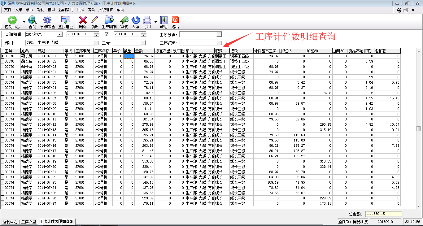 1)定制了按工序錄入每日計件資料,實現(xiàn)按每日工序的產(chǎn)量計算計件工資;