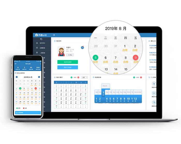 ● 隨時隨地從任何設備高效管理員工的出勤、出差、加班、休假;● 通過將班次與實際業務需求相匹配,AI智能排班,實時統計員工出勤狀況;● 根據智能分析及預警對員工出勤狀況及時做出預測分析,合理規劃生產排程;● 員工假期智能化統計,與薪酬完美聯動,支持各種假期控制管理方案。